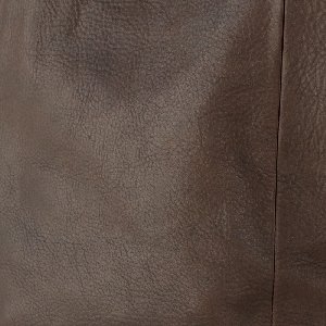 Cartera mediana de cuero tipo bolsa con broche imán, forrada hasta la mitad, con bolsillo con cierre interno. Doble bolsillo al frente sin cierre y correa corta con nudo en sus extremos. Alto: 33 cm, Ancho 28 cm, Profundidad: 11 cm.